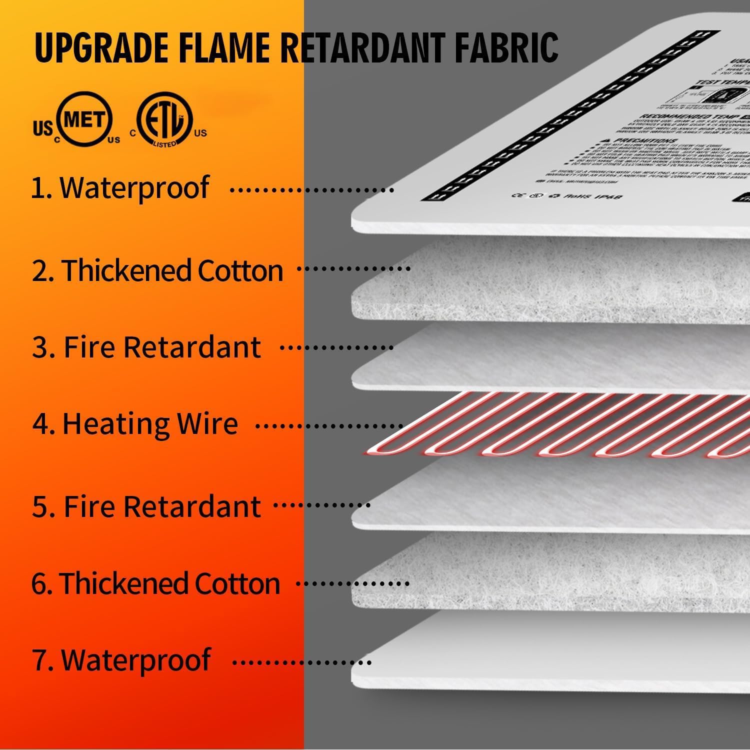 - Built-in fire-retardant cotton and high-quality heating wire for safety